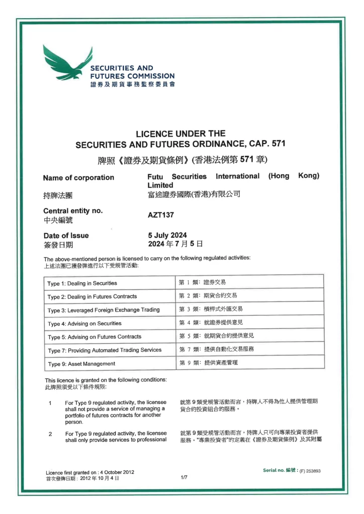 ❗富途證券作為持牌法定機構,富途證券受到SFC的監管,並持有多項金融牌照,這為投資者提供了一定的法律保障。❗