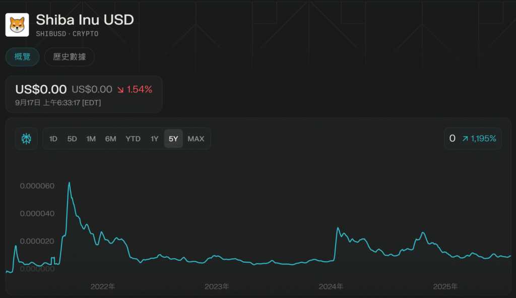 SHIB 柴犬幣 Shiba Inu 2025年多次出現價格暴跌,年內累積下跌超過40%,部分時段跌幅驚人。SHIB嘅價格由市場情緒主導,所以波動極大。任何名人嘅負面消息、市場大跌或社群失去熱情,都可能令SHIB 柴犬幣暴跌。對長線投資者嚟講,都係一個低價入貨嘅機會。