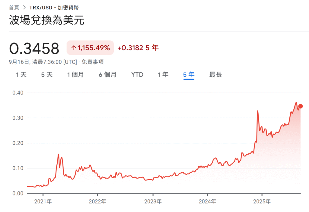 TRX 波場幣(Tron)對美元(USD)價格近期約 US$0.34 左右,波動較大。其走勢受 TRON 網絡生態發展、DeFi 應用交易量、穩定幣 USDT 流通量,以及整體加密貨幣市場情緒影響。