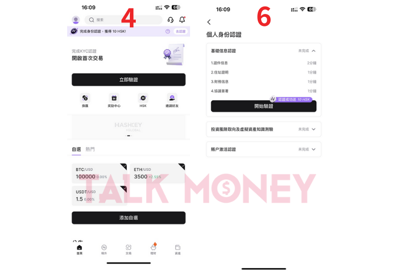 由即日起,用戶使用TalkMoney專屬邀請碼於HashKey Exchange成功開戶,額外送你$200 現金券由Talkmoney提供,以及30HSK+$200由HashKey提供,需要入金HK$10,000