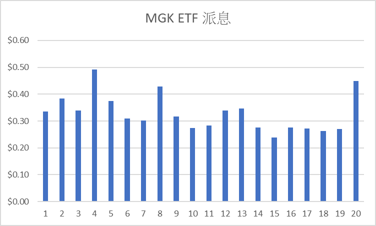 MGK 屬於增長型 ETF,主要目標是資本增值,因此股息率極低(約 0.37%)。它以季度形式派發,不適合靠現金流的香港投資者。專注股價長線升幅才是王道!